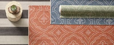Synthetic and natural fiber outdoor area rugs are designed to let water soak through which prevents the carpet from becoming waterlogged.